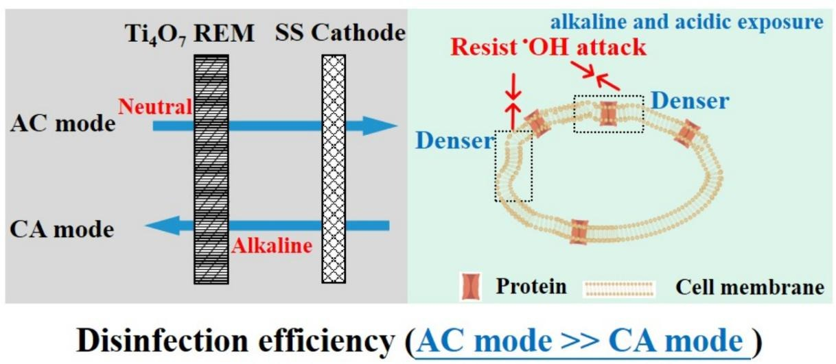 环境中的耐药菌和抗生素污染问题引起了全球关注,耐药菌及病毒仍是公众健康的主要威胁,水体则是耐药菌在环境中传播的主要媒介。基于Ti4O7孔状电极的反应性电化学膜(REM)能够有效增大污染物的相间传质速率和电活化表面积,在污染物去除和耐药菌灭活方面表现出优良特性。然而,其消毒、防污机理尚不清楚。另外,耐药菌包括革兰氏阳性菌(G +)和革兰氏阴性菌(G - )两类,其细胞壁结构和组成存在显著差异。在电化学氧化中,不同水力条件及细胞膜表面不同的组成引起的细胞失活机制差异尚不清楚。本研究发现流动模式决定了Escherichia coli(大肠杆菌)和Staphylococcus aureus (金黄色葡萄球菌)的失活效率。具体而言,阳极-阴极(AC)流模式下,E. coli和S. aureus的失活率分别为5.22和5.47 log,而在阴极-阳极(CA)流模式下,失活率下降到小于1 log。进一步研究发现,阳极电化学氧化反应前的耐药菌暴露的酸碱度决定耐药菌杀菌效率,即中性条件下E. coli和S. aureus能被完全灭活,而在酸性和碱性条件下耐药菌的灭活效率极低。E. coli和S. aureus失活效率的差异也受水力条件下和细胞壁结构的影响,官能团模型和分子动力学模拟表明,细胞结构特别是膜蛋白复合物在碱性和酸性环境下的致密变化抵抗了电氧化对膜结构的攻击。该研究为单次过滤高效处理耐药菌抗性提供了新方法,对控制耐药菌抗性传播具有重要的理论和应用价值。研究成果以 “Electrochemical flow-through disinfection of Escherichia coli versus Staphylococcus aureus: Identifying impacts of flow patterns on efficiency” 为题,发表在Chemical Engineering Journal(2024, 497: 155680)。3dh漫