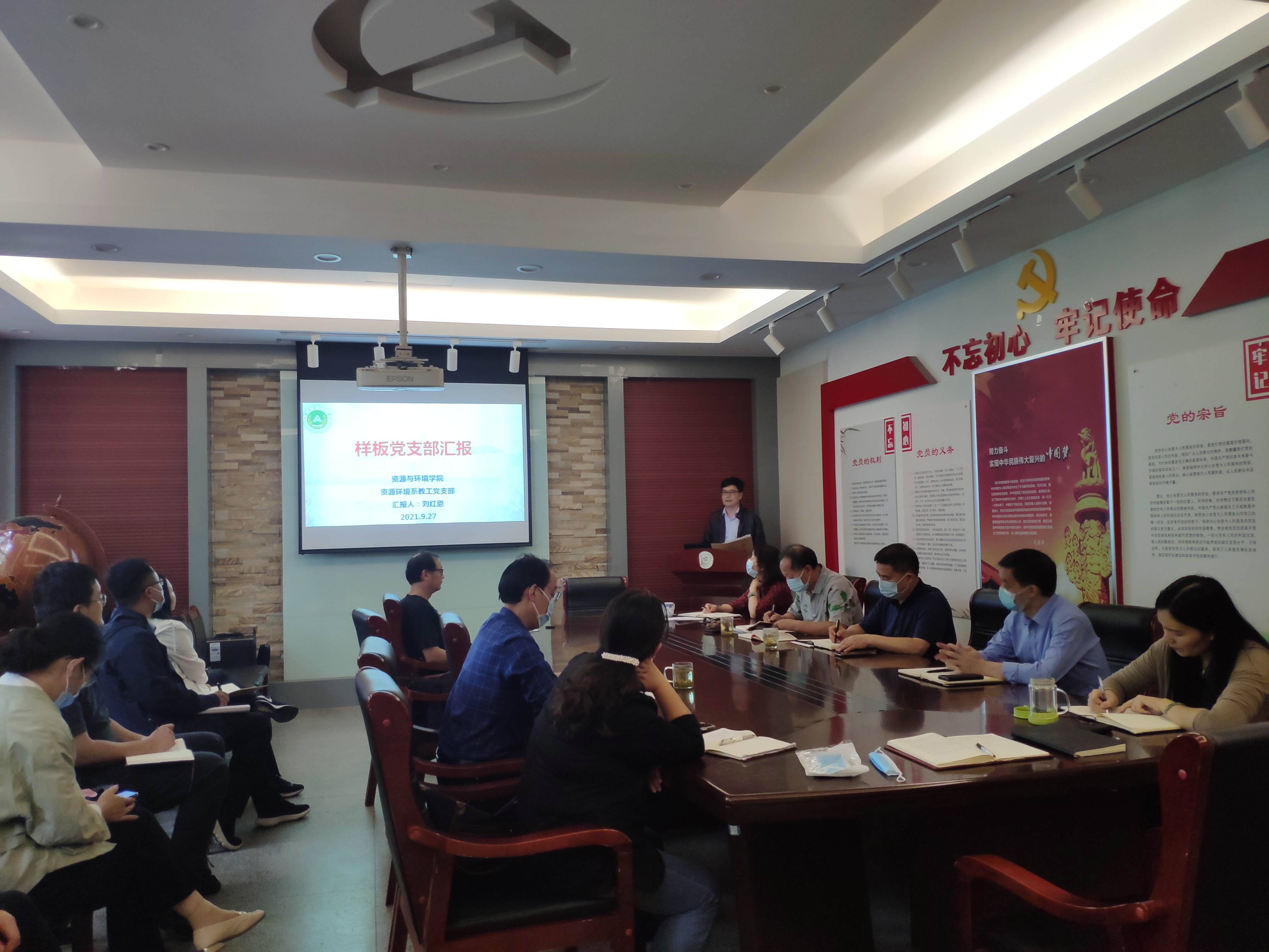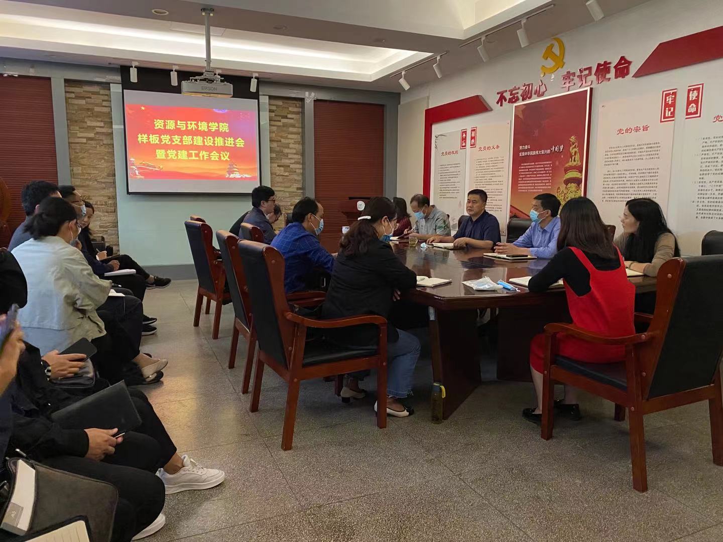 正处级组织员孟祥远就新时代如何做好党支部建设工作进行了介绍,对资源环境系样板党支部从建设方案、健全制度、规范台账、完善硬件、创新机制、方法步骤等几个方面提出了建议。