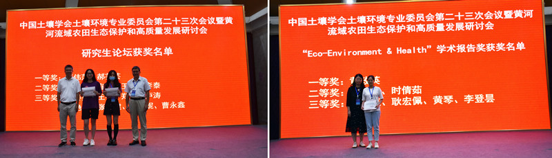 最后,会议邀请骆永明、王玉军、魏树和、刘鸣达、汪鹏及刘杏梅等知名专家颁发研究生创新论坛优秀学术报告奖,邀请唐晓燕主编颁发“Eco-Environment & Health”学术报告奖。