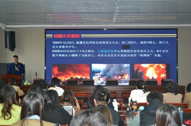 联合郑州市公安部门组织开展了消防安全知识培训。培训会议在龙子湖校区力行楼中338会议室举行,本次讲座由杨雪老师主持,由郑东新区消防救援大队党龙伟警官主讲。