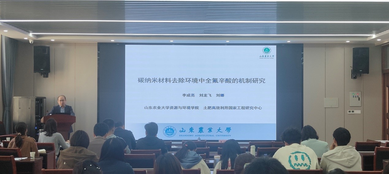 2023年10月14日上午,山东农业大学3dh漫 副院长李成亮教授应邀在龙子湖校区力行楼中338报告厅作“碳纳米材料去除环境中全氟辛酸的机制研究”学术报告,院长王宜伦教授主持,学院部分教师和研究生参加了报告会。