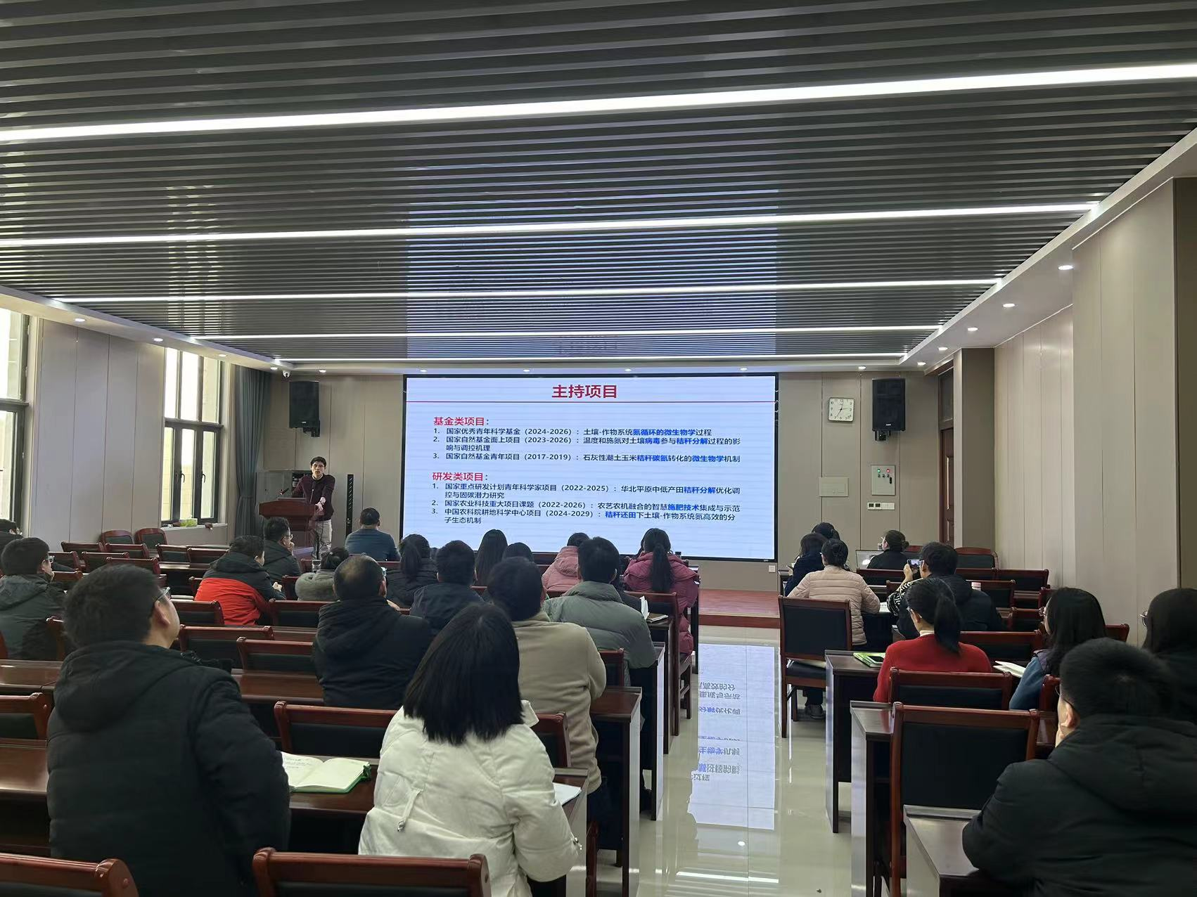 在力行楼中-338报告厅举行了国家自然科学基金申报指导交流会。本次交流会邀请了国家优秀青年科学基金获得者,中国农业科学院农业资源与农业区划研究所植物营养研究室主任艾超研究员进行交流指导,会议由院长王宜伦主持,申请基金的教师参加此次会议。