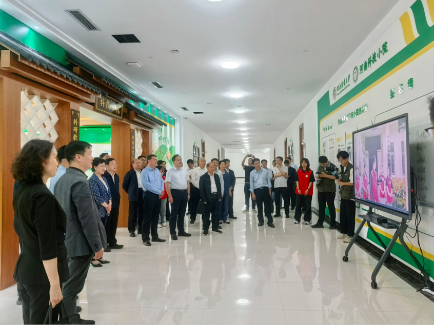 科技小院展厅揭牌后首次正式迎来的首次参观调研。在参观过程中,青年教师齐欣担任讲解员,简要介绍了科技小院创立、发展历程及河南农大科技小院在科研成果转化、社会服务及人才培养等方面取得的成果。