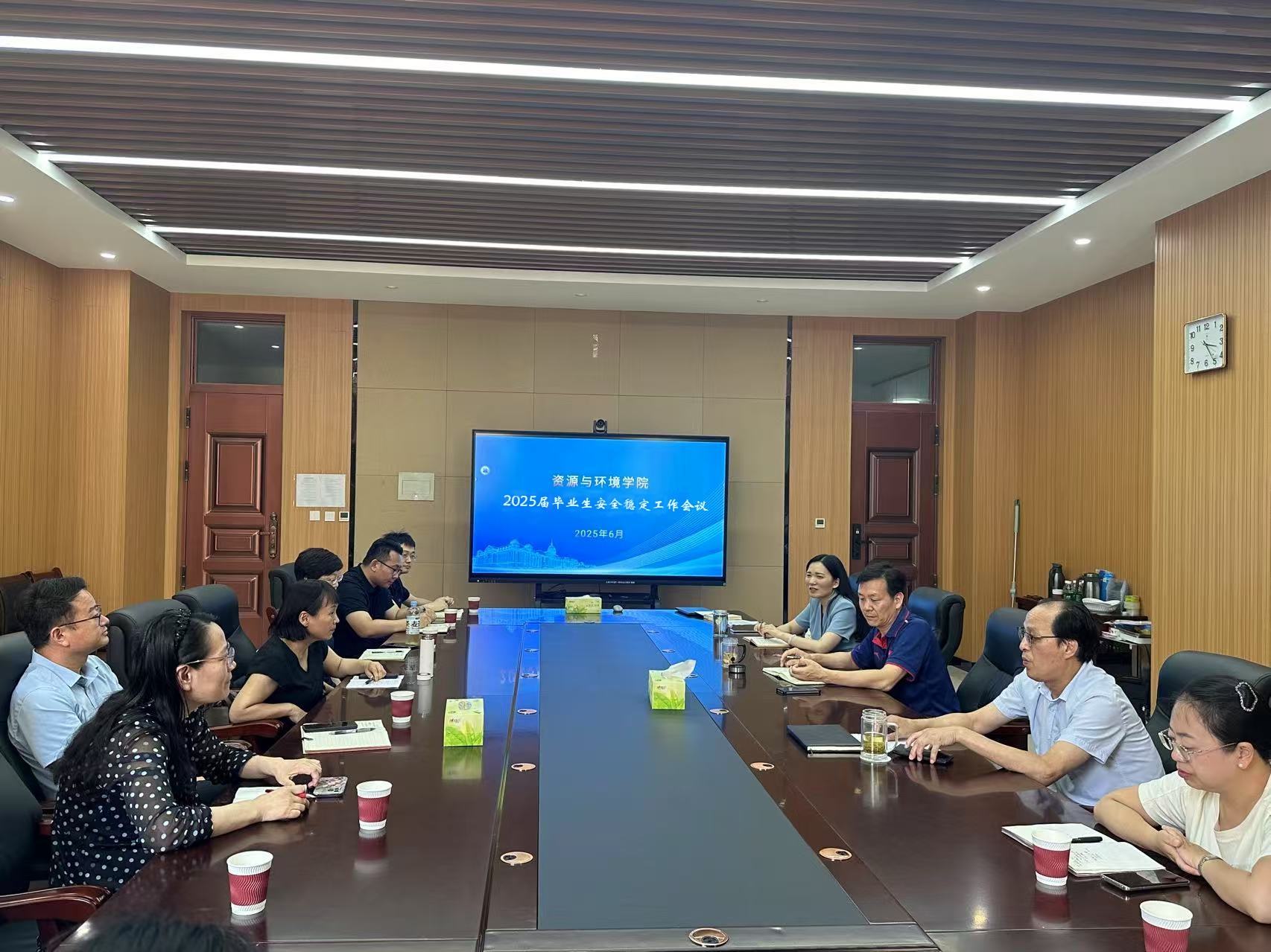于 6月13日下午在力行楼254会议室召开2025届毕业生安全稳定工作会议。学院领导班子成员、各系系主任、全体毕业生班主任及团委老师参加会议。
