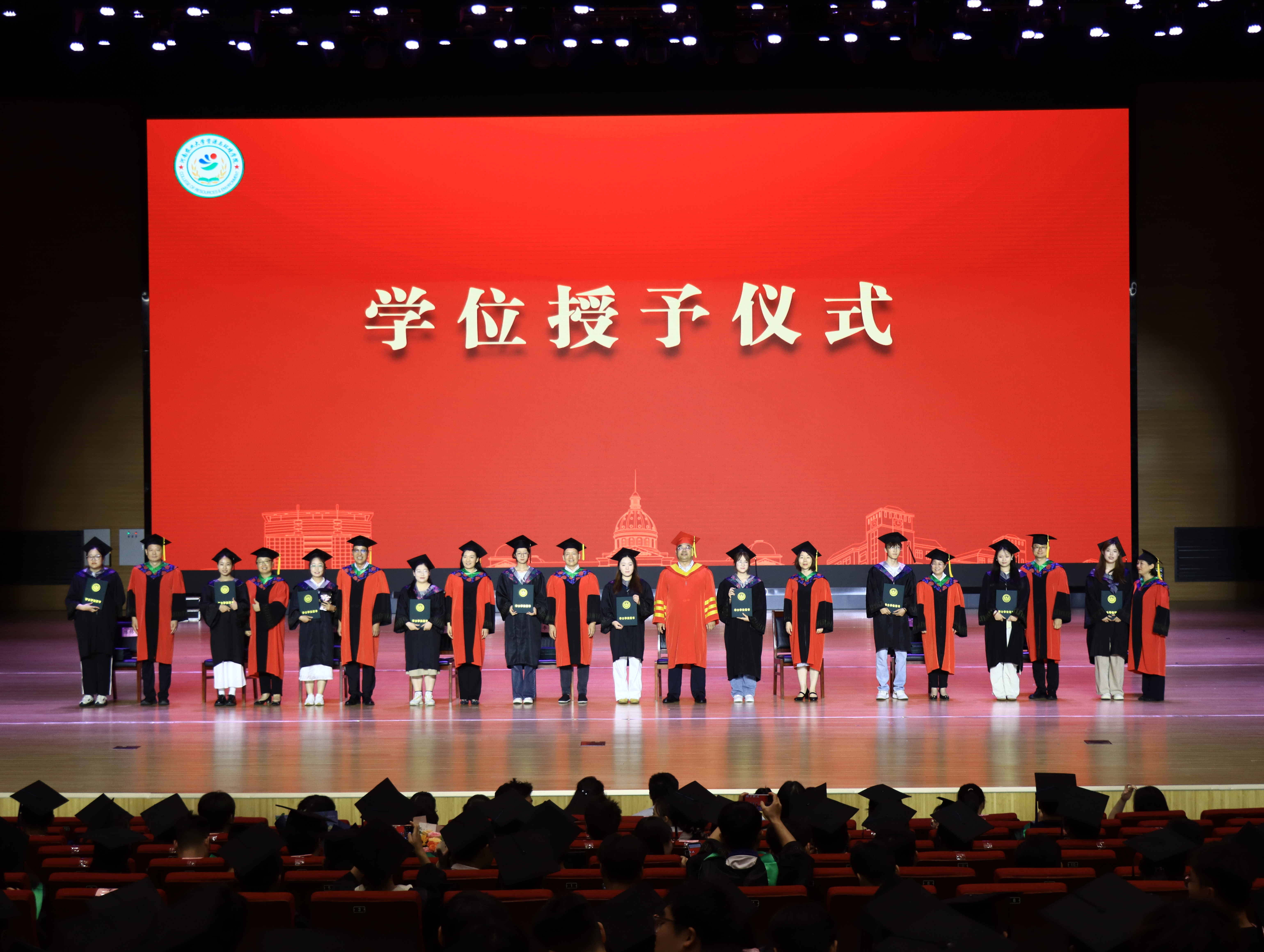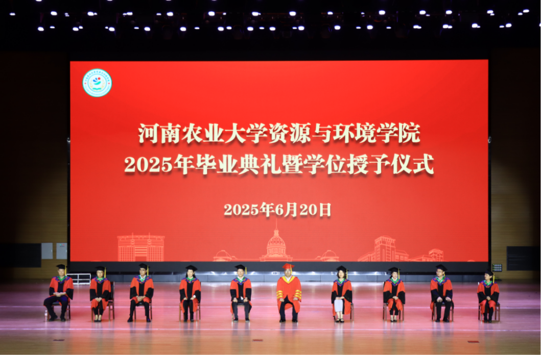 在龙子湖校区英林大礼堂隆重举行2025届毕业典礼暨学位授予仪式。院党委书记李兴道、院长王宜伦、院党委副书记陈景红、副院长杨璟、副院长刘世亮、副院长李玲、植物营养系系主任李慧、土地资源管理系系主任陈伟强、土壤环境系系主任马双龙、人文地理与城乡规划系系主任张亚丽以及学院教师代表参加本次典礼。仪式由陈景红主持。
