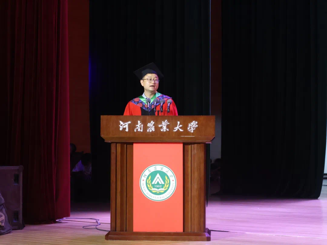最后,院长王宜伦进行致辞。他代表学院向2025届毕业生和家长们表示热烈祝贺!接着他以农大事业发展的良好态势和学院近年来取得的成绩,激励全体毕业生锚定人生奋斗的“航向标”,永葆扎根泥土的“赤子心”;锻造强农兴农的“硬实力”,挺起攻坚克难的“铁肩膀”,共同为母校“冲A入双”积蓄力量,共同为实现中国式农业农村现代化挺膺担当!