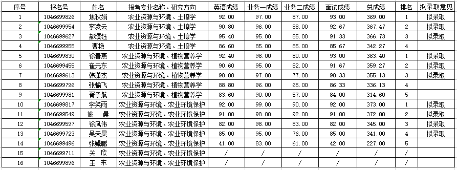 根据《3dh漫 2024年博士研究生招生录取方案》、《3dh漫 2024年博士研究生招生“申请考核制”实施细则》等文件要求,经学院研究生招生工作小组审核,现将2024年博士研究生考核成绩及拟录取名单公示。学院拟录取10人,其中植物营养学方向3人,土壤学方向3人,农业环境保护方向4人。公示期:2024年5月14日--2024年5月20日,如有异议,请与学院办公室联系。联系电话:0371-68555200。