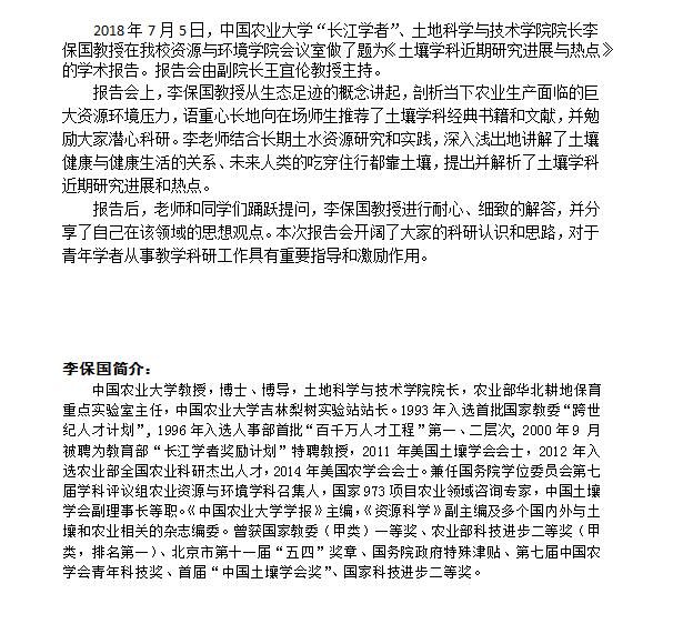 中国农业大学李保国教授应邀来校做学术报告