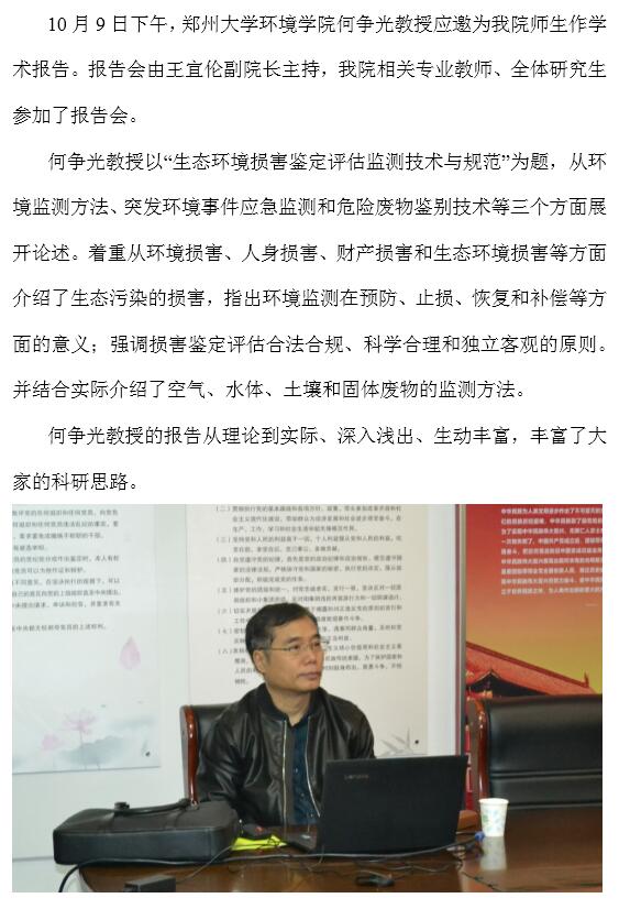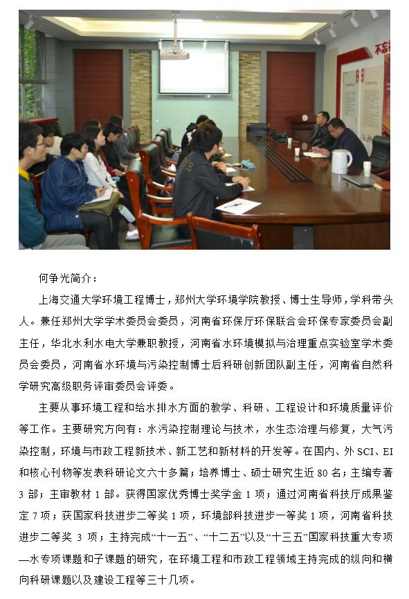 郑州大学环境学院何争光教授来3dh漫 做学术交流