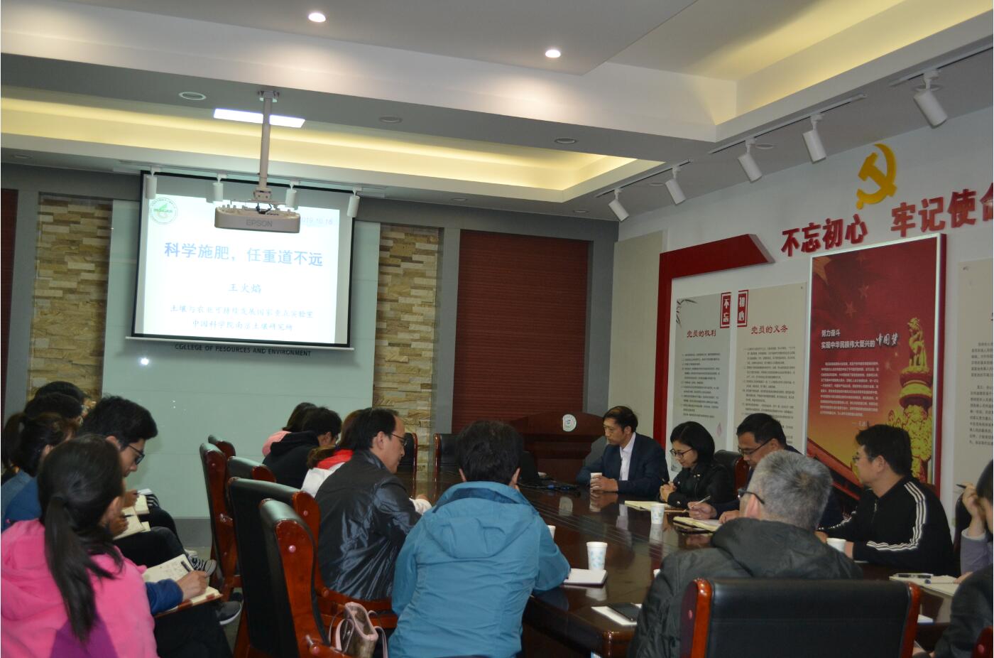2019年10月16日下午,应学院邀请,中国科学院南京土壤研究所王火焰研究员为3dh漫 师生作“科学施肥,任重到不远”学术报告,报告会由王宜伦副院长主持,3dh漫 部分教师、全体博士生和部分硕士生参加。