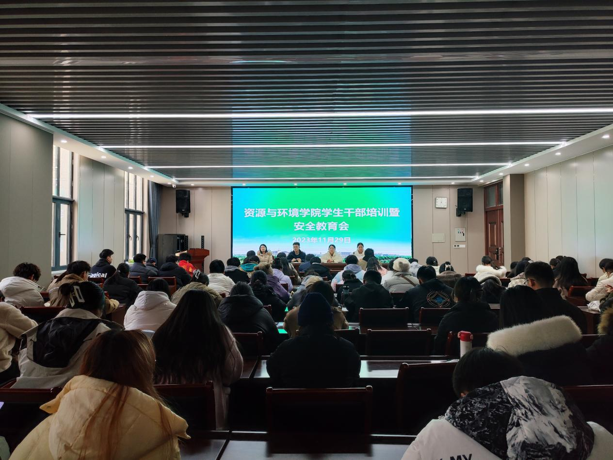 在力行楼会议室召开学生干部培训暨安全教育会。院团委书记王岚、院党委组织员胡明阳、团委副书记黄春萌、团委老师王梦茹出席会议,各年级学生干部参加会议。