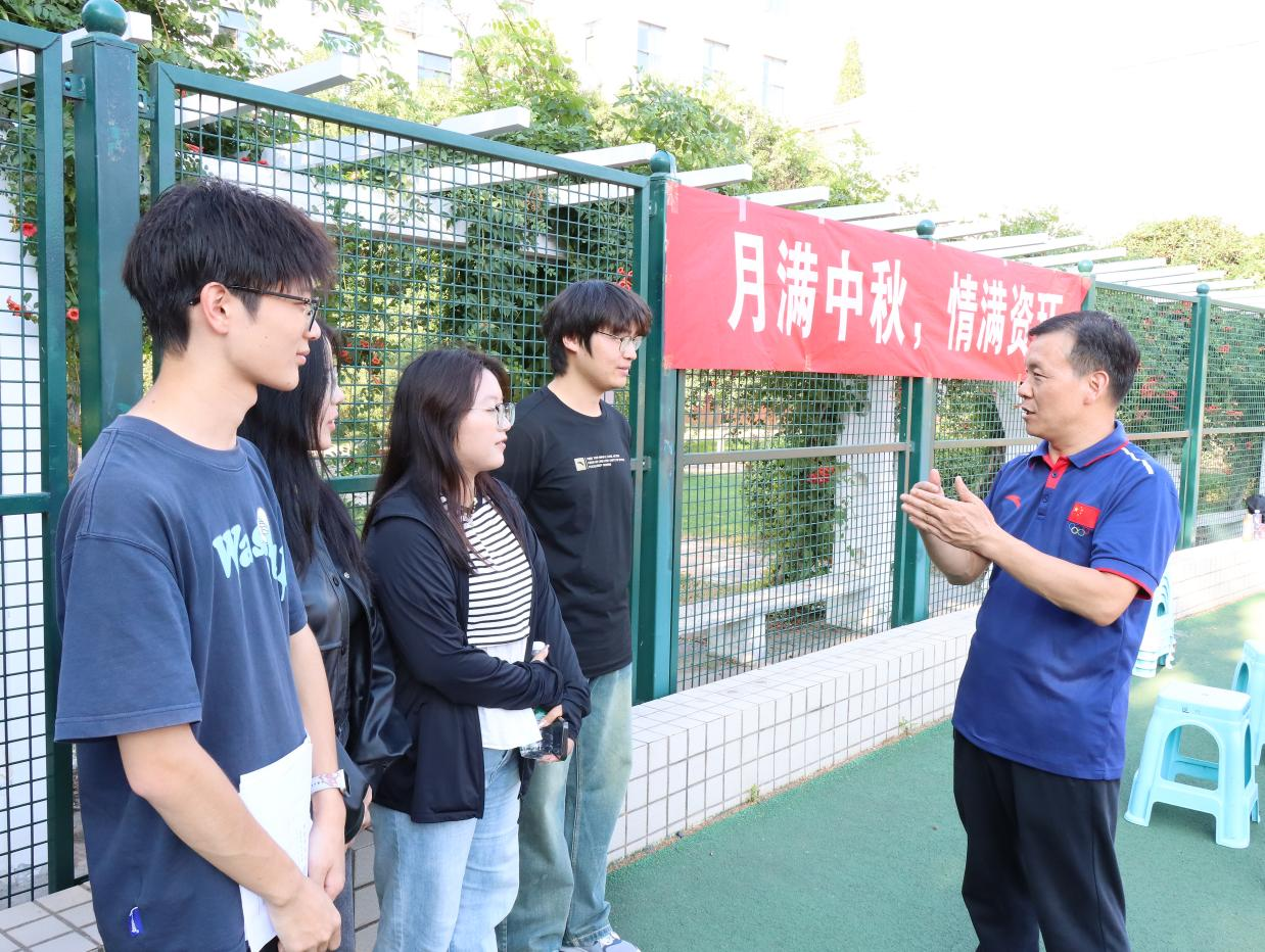 9月16日下午于文化路校区操场举行“月满中秋,情满资环”军训关怀活动。院党委书记李兴道,党委副书记陈景红,24级辅导员邓晓铮共同出席。