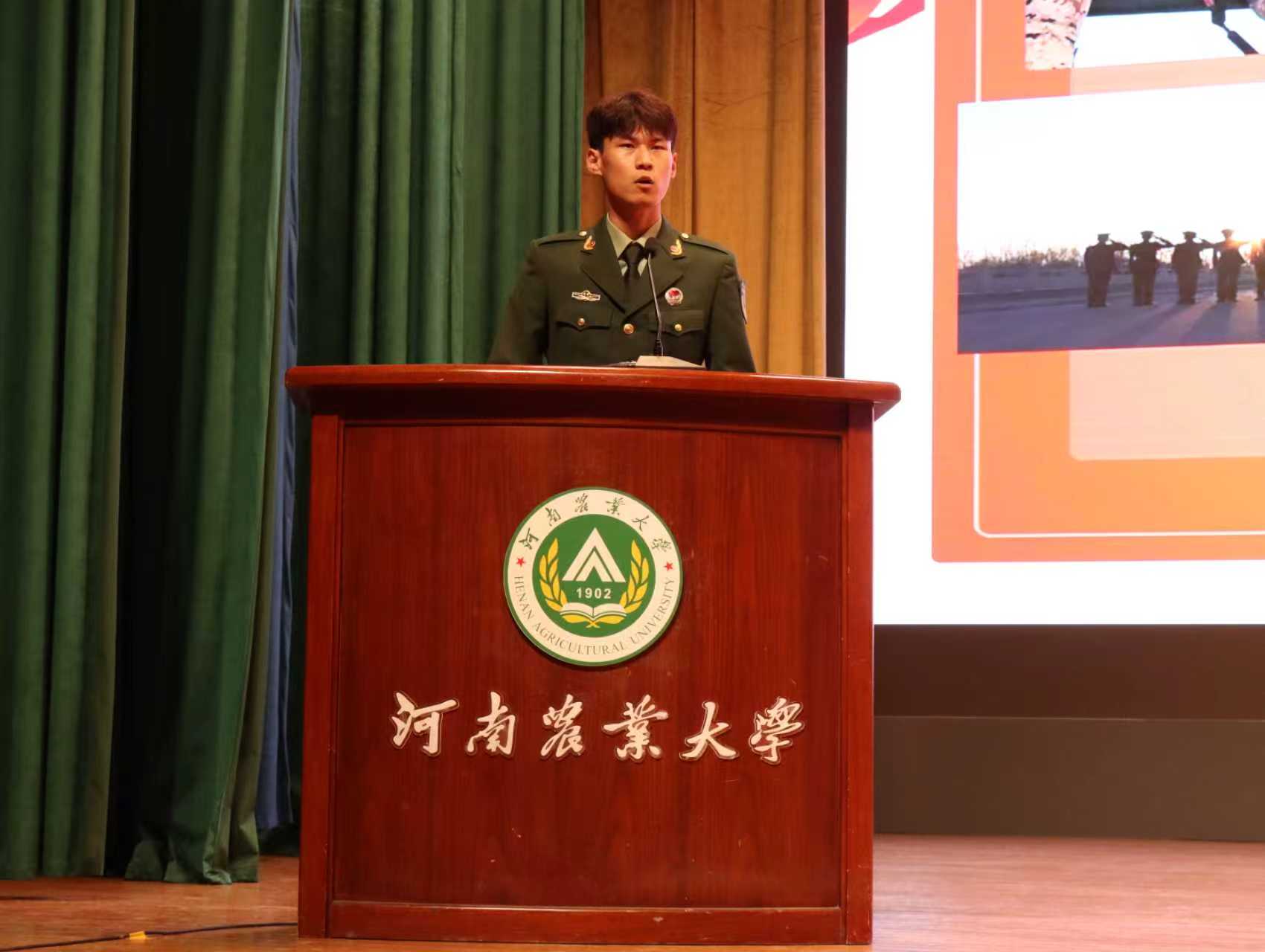 会上,学院特别邀请了方威、石家瑜两位退役复学的同学进行专题宣讲。两位同学结合自身服兵役经历,先后介绍了大学生入伍优惠政策、应征入伍条件和流程、退役优待保障等内容,让新生切实体会到参军入伍对于个人成长和国家安全的重要意义。