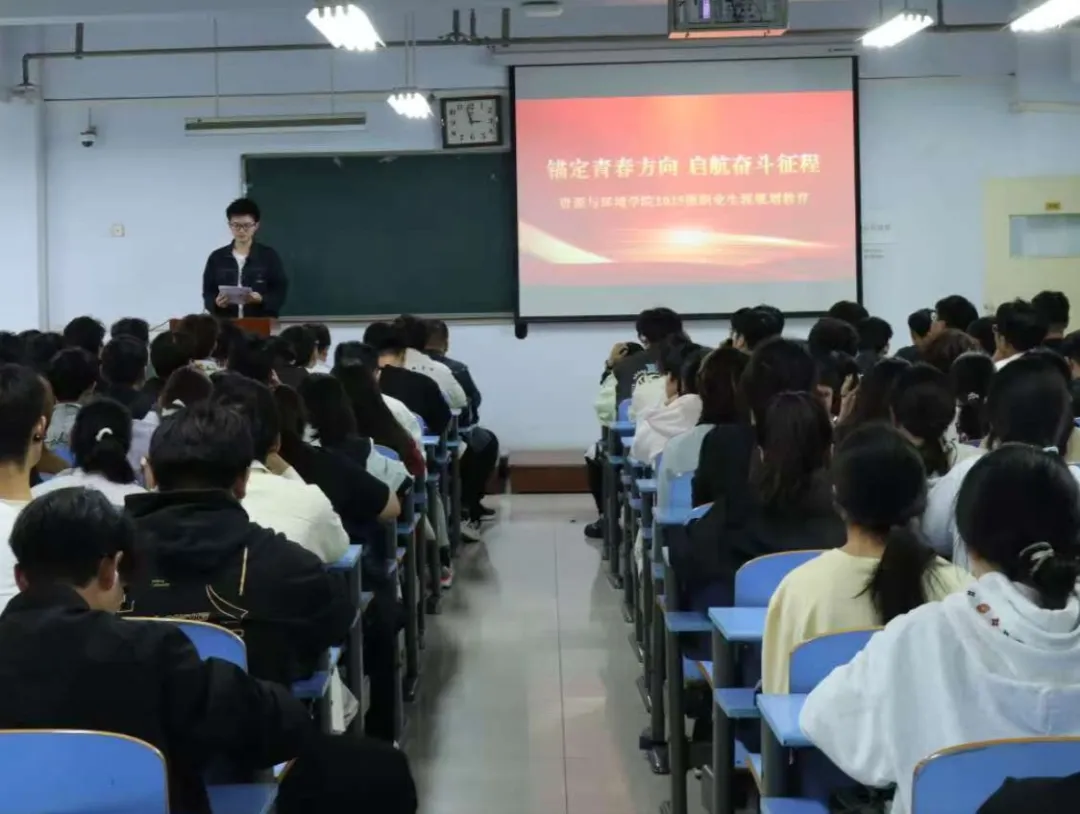 于文化路校区推广楼开展“锚定青春方向,启航奋斗征程” 职业生涯规划主题教育。本次活动由团委老师张顺涛与科技小院研究生团队担任主讲,2025级新生共同参加。