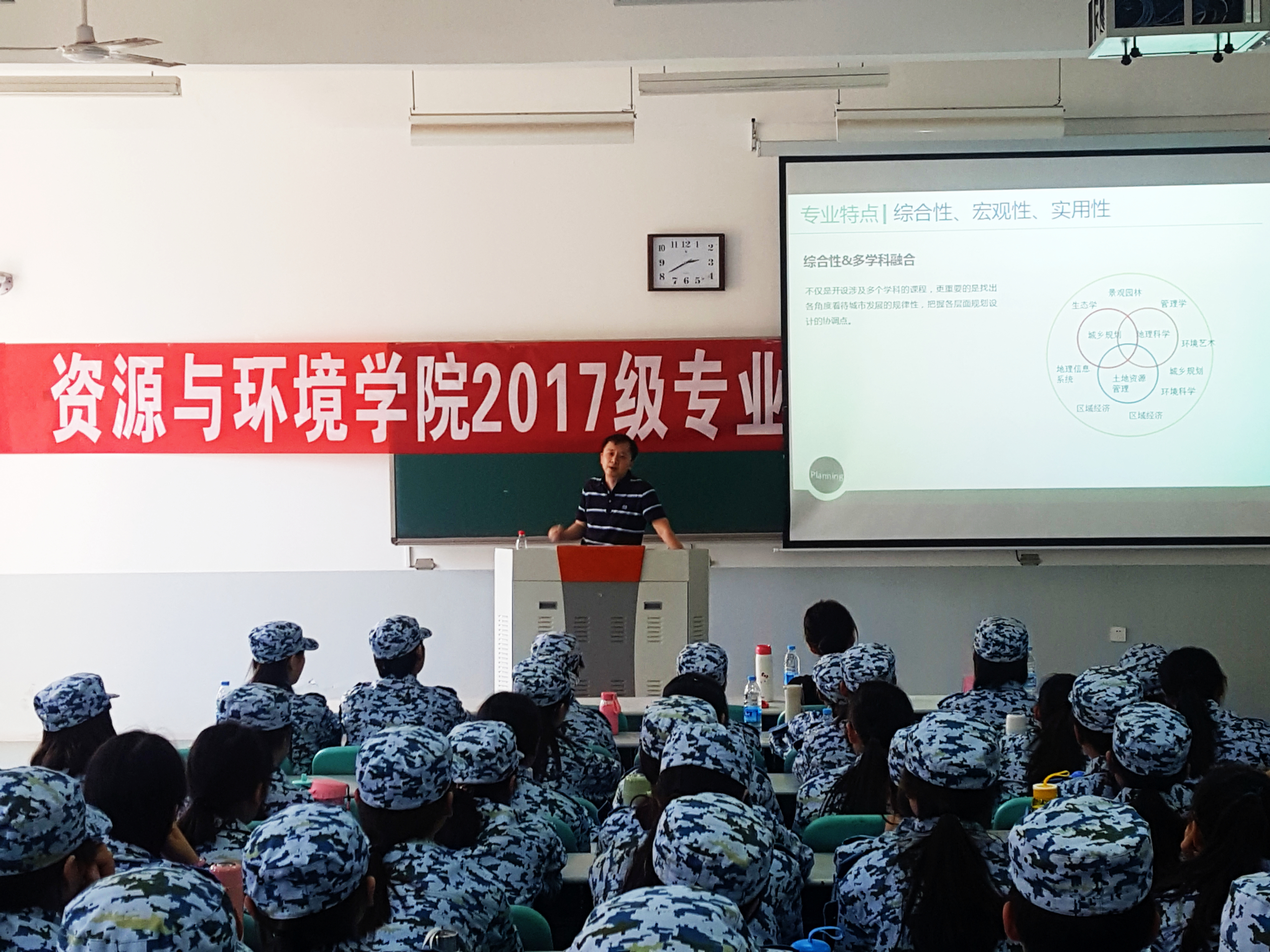 于9月14日下午在龙子湖校区大教室7举行土地资源管理和人文地理与城乡规划专业介绍会。本次介绍会由土管系陈伟强老师和地城系李昕、汪潇老师主讲,部分新生班主任、2017级土管、土治和地城专业全体新生参加。