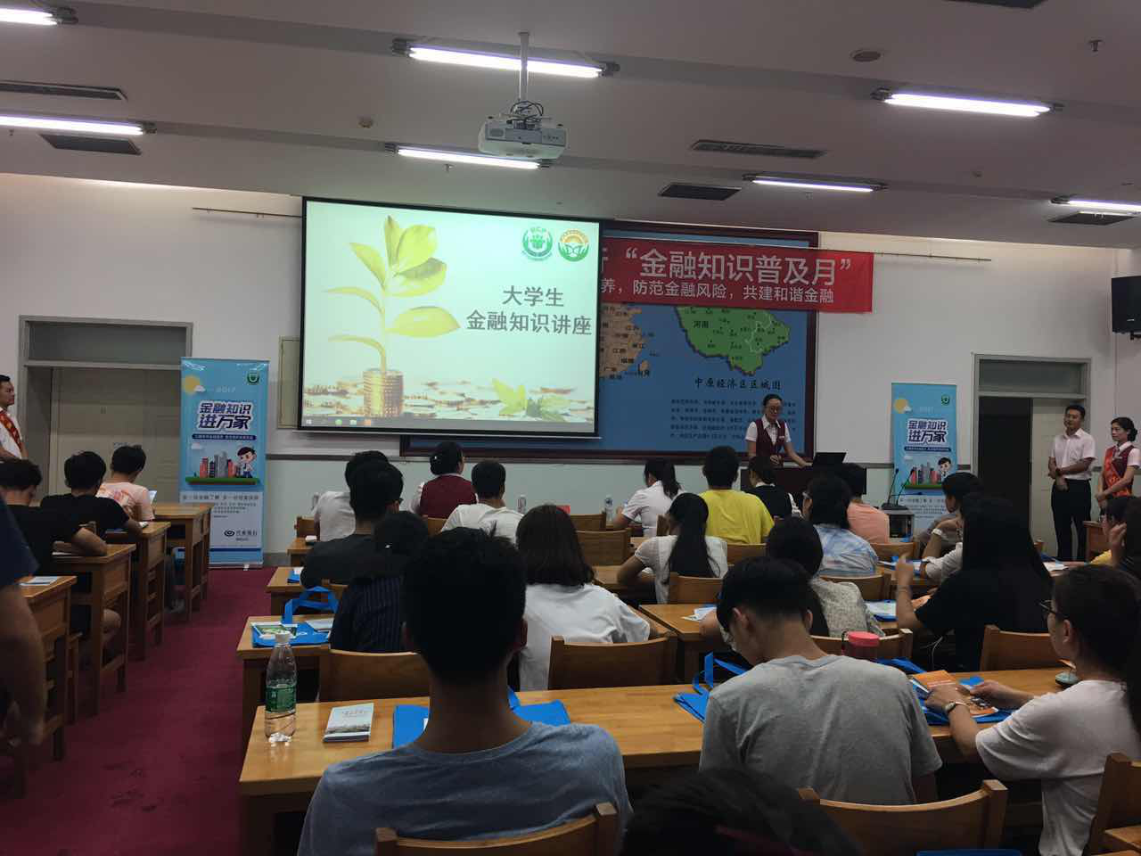 报告会由兴业银行郑州分行及各支行的工作人员进行介绍,工作人员首先围绕我国目前的金融体系和财务管理进行讲解,培养同学们的金融理财意识。其次,通过列举一些具体的事例让同学们更深入了解理财,坚决抵制庞氏骗局。随后向同学们讲述如何保护个人信息、如何使用信用卡,并告知同学们如何识别不良校园贷款,以正确的渠道进行贷款,维护个人财产安全。最后向同学们介绍了第五套人民币的防伪特征以及识别假币的简便方法,以防上当受骗。