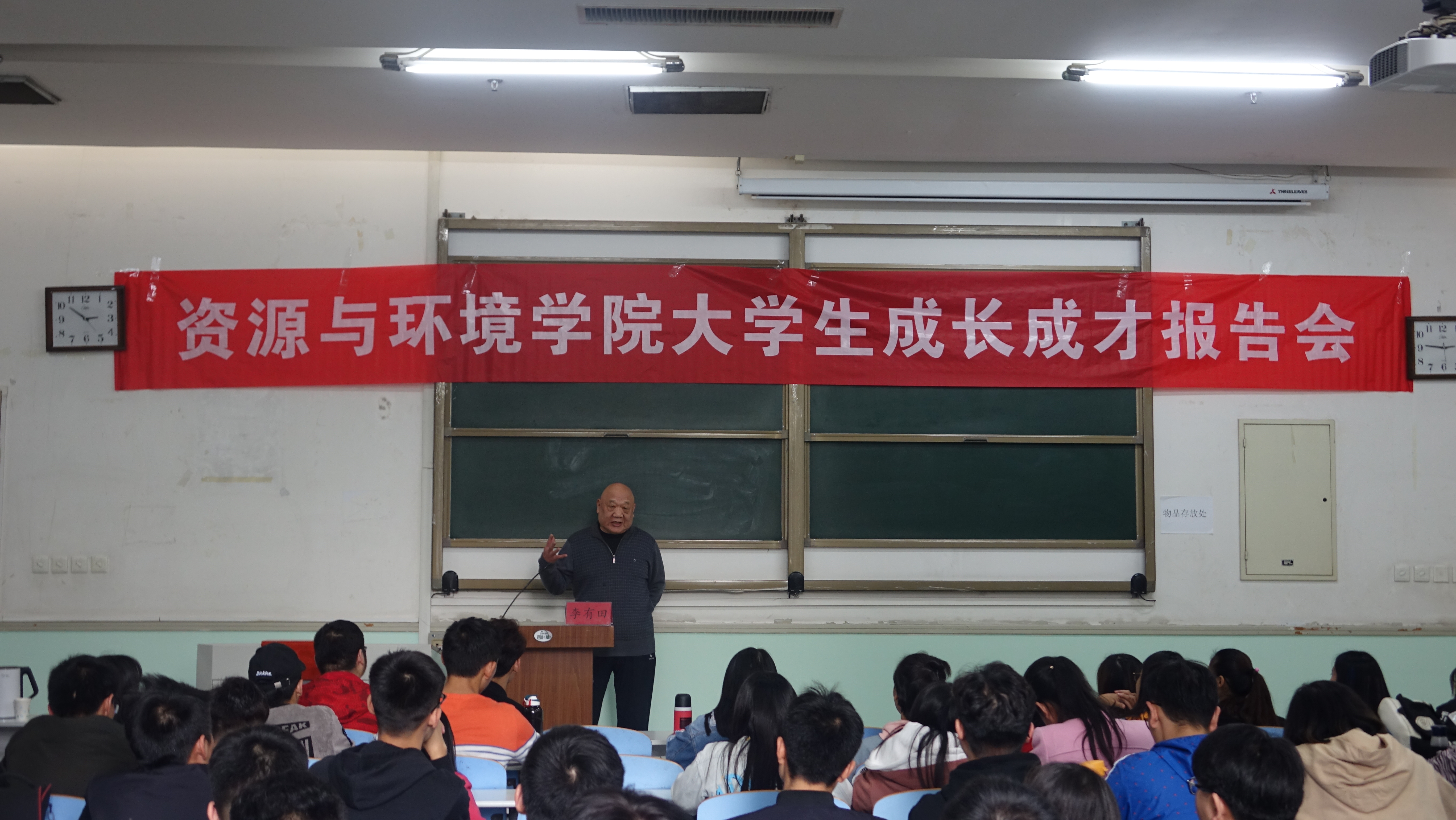 在文化路校区工程楼102教室举办“大学生成长成才”报告会,主讲人为我校李有田教授,2016级部分学生参加,会议由辅导员宋艳粉主持。
