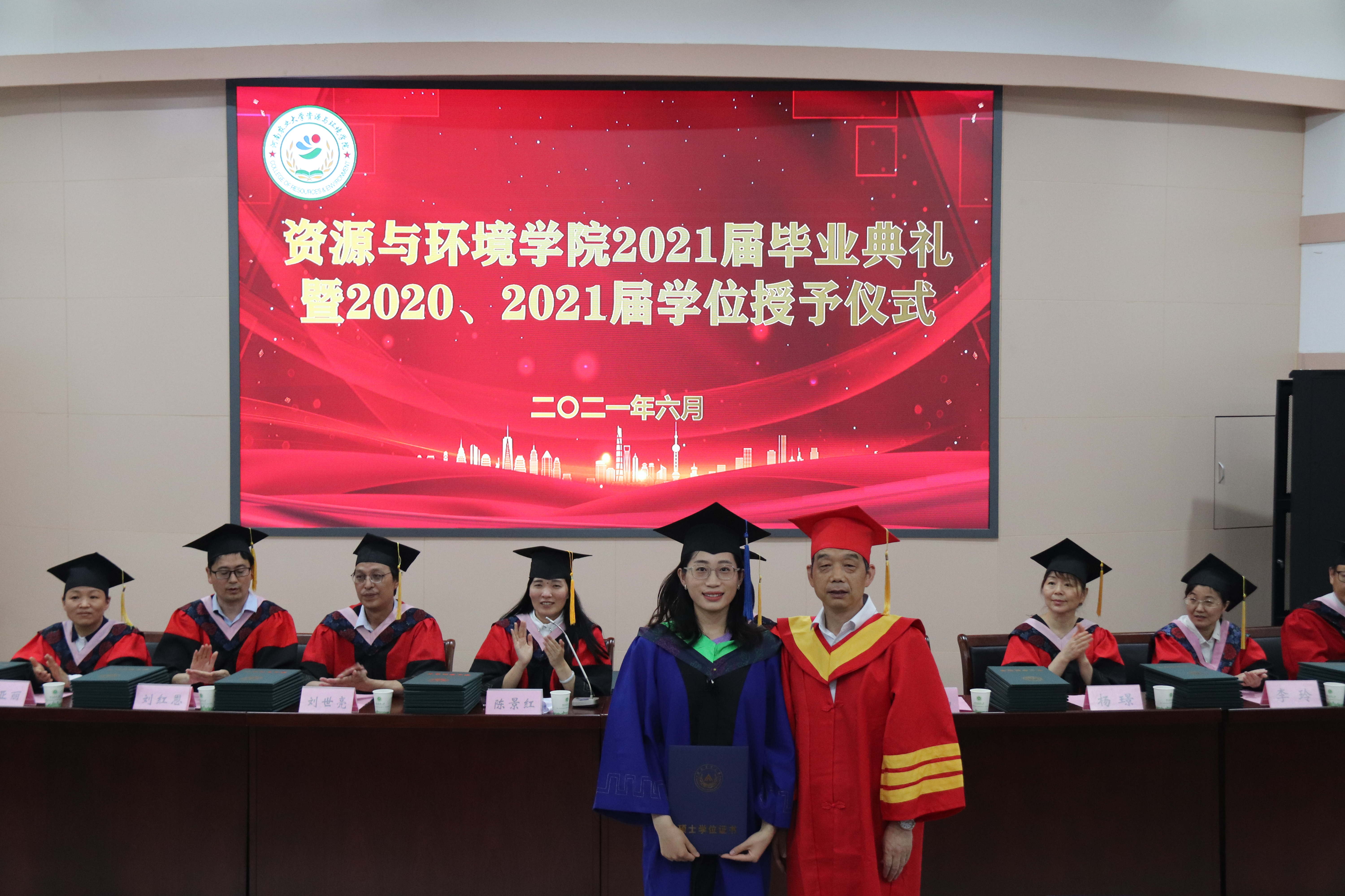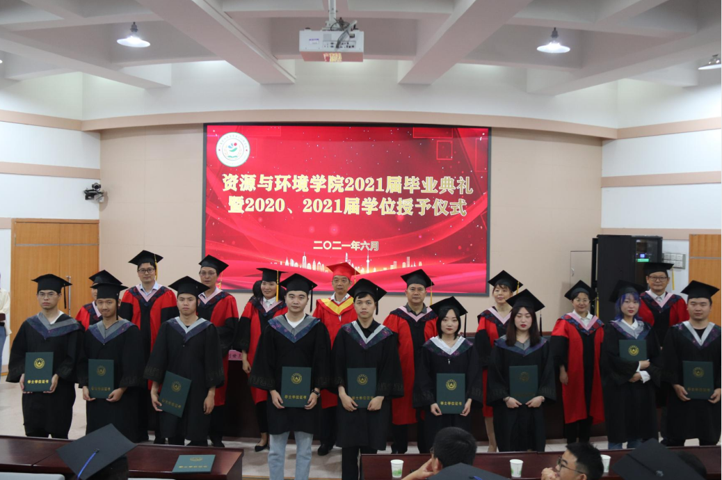 毕业典礼在庄严的国歌中拉开帷幕。会上,刘世亮副院长宣读了《关于表彰3dh漫 2021届省级、校级优秀毕业生的决定》,并对优秀毕业生代表进行表彰。接着,进入学位授予环节。伴随着轻快的音乐,全体院领导依次为2021硕士毕业生、2020届本科毕业生以及2021届本科毕业生颁发学位证书、拨流苏,并进行合影留念。随后,毕业生代表杨一鸣同学进行发言,他回顾了四年大学生活,流露出对母校的眷恋、对同学的不舍,同时也代表2021届毕业生向学院老师表示衷心的感谢、致以崇高的敬意。资环系系主任刘红恩作为代表老师对毕业生临别赠言,表达了对同学们的深深祝福, 鼓励同学们积极承担使命,坚定前进信心,让青春在为祖国和人民的不懈奋斗中绽放绚丽之花。