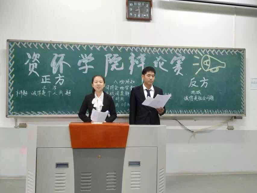 于繁塔楼C208举行了以“以诚信为桨,驶人生之舟”为主题的2018级新生辩论赛。