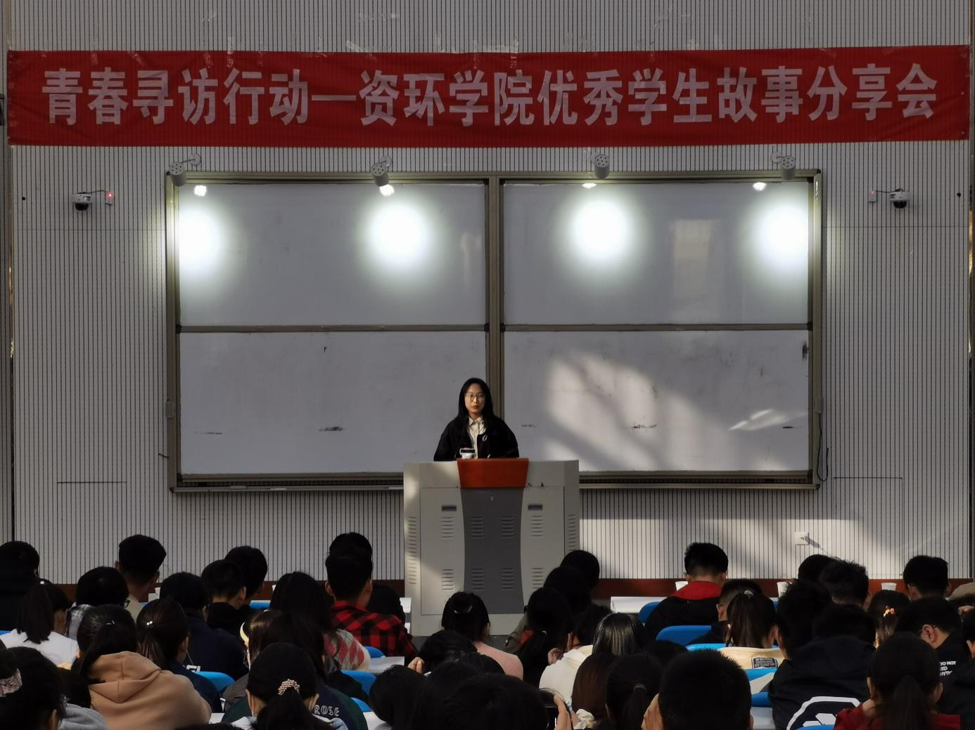 在分享会中,7位高年级优秀学生代表与20级同学面对面,认真分享了他们大学生活中奋斗、拼搏、努力的故事,用自身经历传递青春正能量。7位优秀学生代表涵盖大二、大三、大四三个阶段,他们分别从个人成长和学习经历,向一年级同学讲述如何才能更好地度过大一时光以及如何才能规划好未来的四年生活。几位学生代表都指出了“预习、听讲、复习”的重要性,都表明了课堂学习与户外运动相结合的重要作用。会议临近结束时,同学们踊跃发言,纷纷提出自己在学习或生活上遇到的困惑。学生代表们均耐心地予以解答,并针对问题提出建议,同学们都表示受益匪浅。