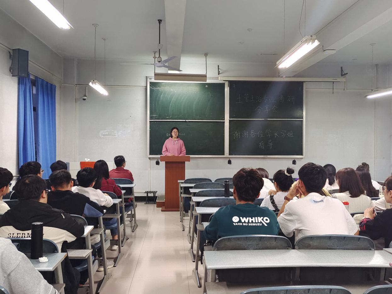 4月19日晚于桃西教学楼分专业为2018级全体学生召开考研经验交流分享会,邀请2017级优秀考研学子为尚未明晰自身目标或对考研信息不够了解的同学们分享经验,答疑解惑。